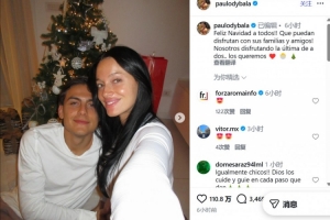 体育资讯12月26日讯 不久前,迪巴拉更新社交媒体,晒出了与妻子奥利亚娜共度圣诞节的合照。