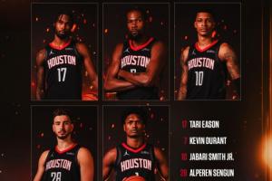 火箭首发:阿门、伊森、杜兰特、小贾、申京。